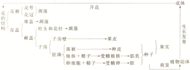 植物的花完成傳粉神和受精后,花的各部分就發(fā)生了如下的變化,形成了果實和種子。