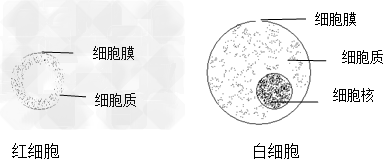 分別繪出一個紅細胞和白細胞的結構鏡像圖。