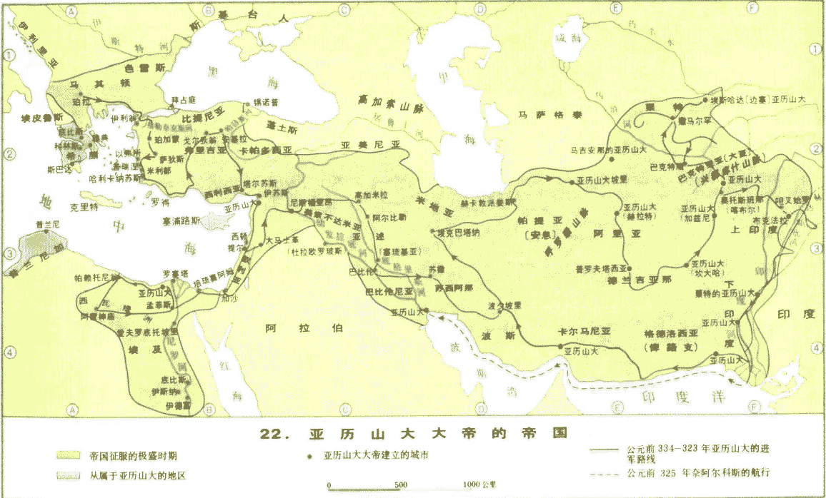 亞歷山大大帝的東征,在客觀上是把希臘文化傳播到東方,東方文化滲入到希臘文化的過程。促進了中西方文化的交流。