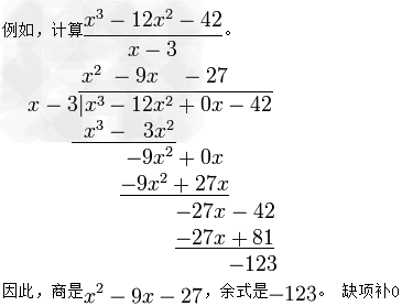 (4)把減得的差當作新的被除式,再按照上面的方法繼續(xù)演算,直到余式為零或余式的次數(shù)低于除式的次數(shù)時為止.