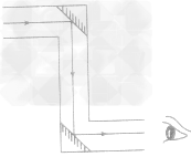 補(bǔ)充:最簡(jiǎn)單的潛望鏡是用兩塊互相平行的、與水平方向成45。角的平面鏡構(gòu)成的,用它可以看到高處的、被掩蔽物擋住的物體,如圖所示: