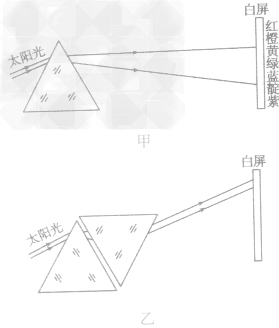 第一,白光不是單色的,而是由各種單色光組成的復色光;第二,不同的單色光通過棱鏡時偏折的程度是不同的,紅光的偏折程度最小,紫光的偏折程度最大。