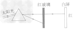 1.透明物體的顏色由通過它的色光決定在光的色散實驗中,如果在白屏前放置一塊紅色玻璃,則白屏上的其他顏色的光消失,只能留下紅色,說明其他色光都被紅玻璃吸收了,只能讓紅光通過,如圖所示。如果放置一塊藍玻璃,則白屏上呈現(xiàn)藍色。