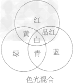 如圖所示,適當?shù)募t光和綠光能合成黃光;適當?shù)木G光和藍光能合成青光;適當?shù)乃{光和紅光能合成品紅色的光;而適當?shù)募t、綠、藍三色光能合成白光。因此紅、綠、藍三種色光被稱為色光的“三原色。”