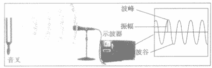 借助示波器,人們可以更加準(zhǔn)確地找出不同聲音的區(qū)別。如圖所示,先用麥克風(fēng)接收聲音,將聲音信號(hào)轉(zhuǎn)變?yōu)殡娦盘?hào)輸入到示波器中,通過(guò)示波器的處理就能在示波器的熒光屏上顯示出與聲波相對(duì)應(yīng)的圖形,即波形圖。