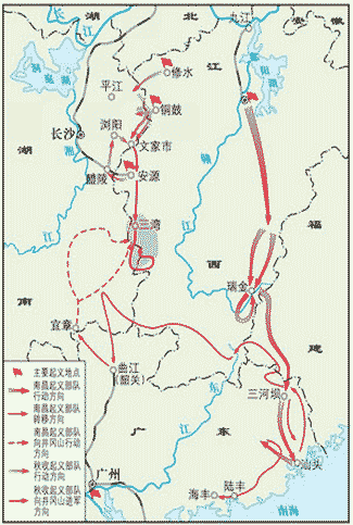 4、結(jié)果:殲滅南昌守敵3000余人,起義取得勝利;接著,國民黨調(diào)重兵進(jìn)行反撲,損失慘重。起義軍,一部分進(jìn)入海陸豐地區(qū)??堅持斗爭;一部分由朱德、陳毅率領(lǐng)轉(zhuǎn)戰(zhàn)湘南。