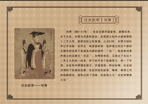 4.廢除王莽時(shí)期的苛捐雜稅,下令恢復(fù)西漢年間的三十稅一,提倡節(jié)儉,裁并機(jī)構(gòu),裁撤冗員,嚴(yán)懲貪官污吏。