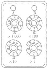 旋盤下面△所對應(yīng)的示數(shù)乘以相應(yīng)的倍數(shù)之和。四個旋盤所對應(yīng)的電阻值是0?9999之間的整數(shù)值。