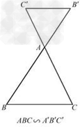 例如圖中,若B'C'//BC,那么角B=角B',角BAC=角B'A'C',是對頂角,那么我們就說△ABC∽△AB'C'