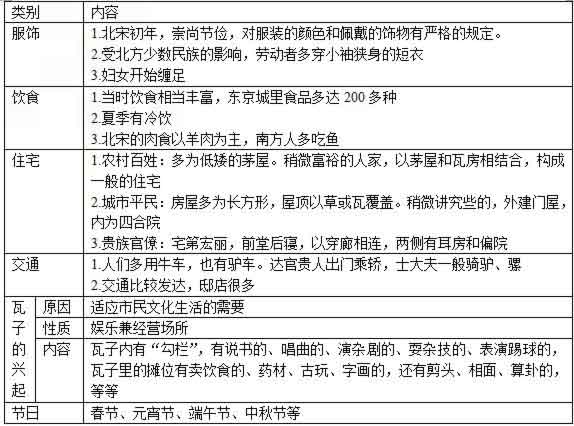 相關初中歷史知識點:宋代市民文化生活