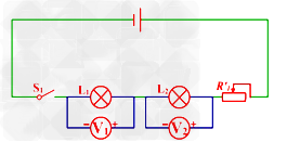 器材:兩個(gè)燈泡(不同規(guī)格)、電源、開關(guān)、導(dǎo)線、電壓表(兩只)、滑動(dòng)變阻器