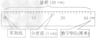正確讀數(shù)和記錄數(shù)據(jù)是做好測(cè)量的關(guān)鍵。讀數(shù)時(shí),應(yīng)弄清各大小刻度值的意義(即標(biāo)有數(shù)字的主刻度的單位及分度值的單位)。如圖所示,每一大格為1cm,每一小格為1mm。讀數(shù)時(shí),還要注意被測(cè)物體的始端是否與刻度尺的零刻線對(duì)齊,若沒(méi)有對(duì)齊,要將所讀數(shù)值減去這一刻度的刻度值。