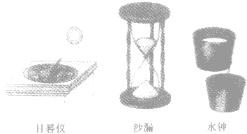 通常所說(shuō)的時(shí)間測(cè)量包括:時(shí)間間隔的測(cè)量和時(shí)刻的測(cè)量。時(shí)間的測(cè)量工具主要有停表、手表、鐘表以及占代用的日晷、沙漏等,如圖所示。