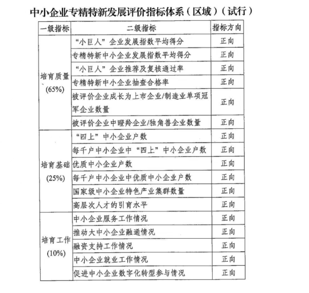 表現(xiàn)為:中小企業(yè)專(zhuān)精特新發(fā)展評(píng)價(jià)指標(biāo)體系-區(qū)域版(試行)