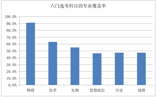六門選考科目的專業(yè)覆蓋率如下圖所示: