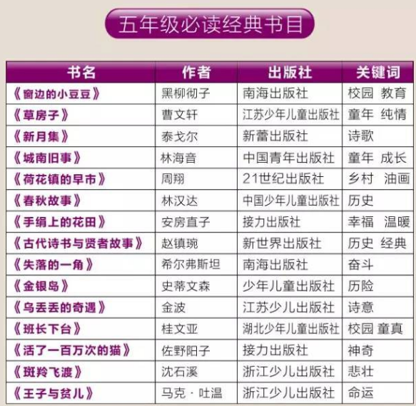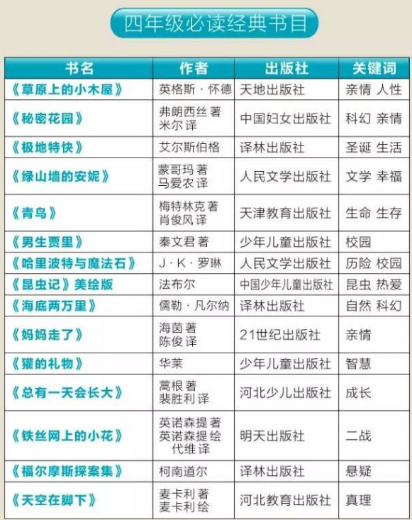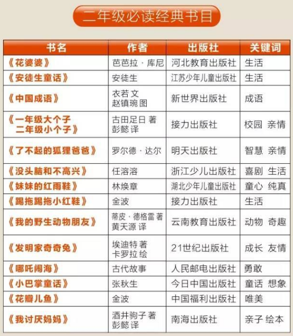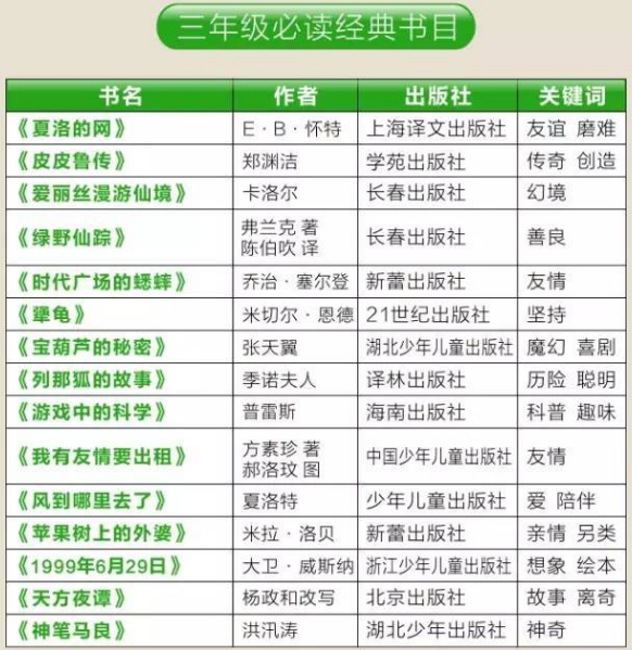 1到2019年級課外必讀書單