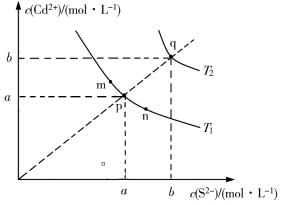 A.圖中a和b分別為T1、T2溫度下CdS在水中的溶解度