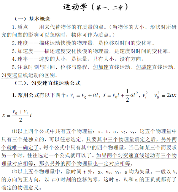 新高一暑期預(yù)習(xí)正如火如荼的進行中,了解了高中物理中常用的公式之后,再跟小編一起看一下高一上學(xué)期都有哪些知識點?運動學(xué)內(nèi)容分布在前兩章,不僅包含概念等基礎(chǔ)知識,也有計算常用的公式。