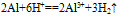 鋁與酸反應:鋁與濃硫酸在常溫下發生鈍化,2Al+6HCl==2AlCl3+3H2↑