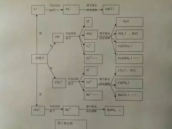 (3)知道常見的氣體和沉淀。這類問題其實就是離子間的相互反應,離子間的相互反應在解決很多問題時都能用到,這個知識點很重要,構(gòu)圖如下: