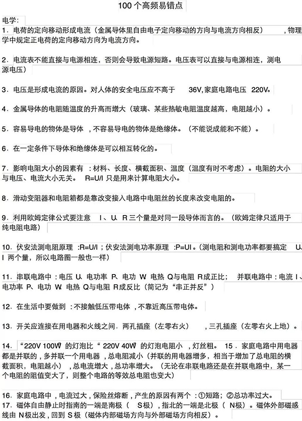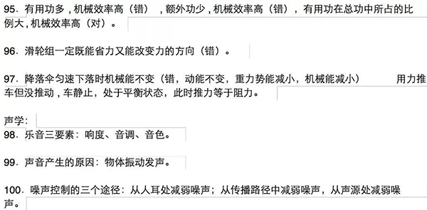 今天為大家分享一篇資深物理老教師的知識(shí)干貨,里面羅列了初中物理100個(gè)易錯(cuò)知識(shí)點(diǎn),覆蓋初中物理所有章節(jié),非常有用!大家考試前,可以多看幾遍!