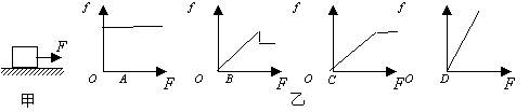 練習(xí):如圖乙所示,在水平桌面上放一木塊,用從零開(kāi)始逐漸增大的水平拉力 F 拉木塊直到沿桌面運(yùn)動(dòng),在此過(guò)程中,木塊所受到的摩擦力 f 的大小隨拉力 F 的大小變化的圖象正確的是( )