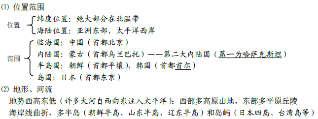 東部沿海地區(qū):自然條件優(yōu)越,平原多,耕地比重大,氣候溫暖濕潤,利于農(nóng)業(yè)發(fā)展,沿海港口多,交通便利,人口眾多,勞動(dòng)力充足,歷史悠久,科技文化水平高,為經(jīng)濟(jì)發(fā)展提供了極其有利的條件,現(xiàn)已出現(xiàn)很多工農(nóng)業(yè)發(fā)達(dá)的地區(qū),是世界上主要的水稻、蠶絲、茶葉的產(chǎn)地。日本是世界的工業(yè)大國、現(xiàn)代工業(yè)發(fā)達(dá)的國家,此外韓國、中國的東部沿海地區(qū)、臺灣省、香港地區(qū)等經(jīng)濟(jì)發(fā)達(dá)區(qū)和新興工業(yè)區(qū)不斷形成。