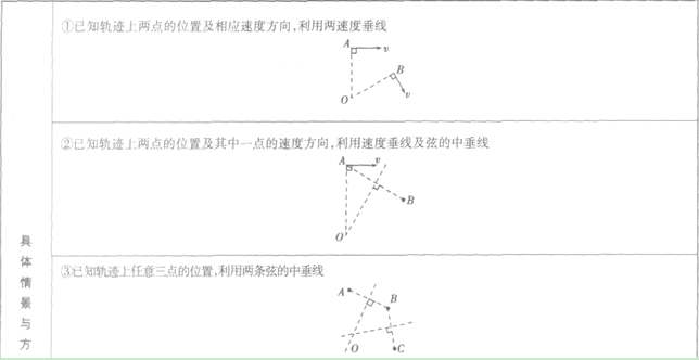 確定軌跡圓心位置的方法: