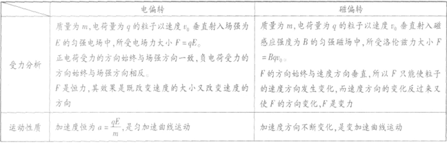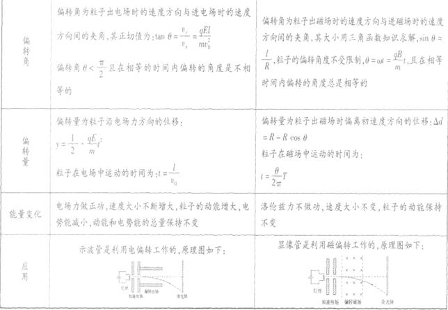 電偏轉(zhuǎn)與磁偏轉(zhuǎn)的對比: