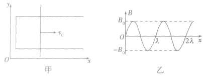 如圖甲所示,磁場垂直于xoy平面,大小只在沿x 軸方向按圖乙所示規(guī)律發(fā)生變化。當(dāng)導(dǎo)體桿以速度v0 沿x軸勻速運動時,桿產(chǎn)生的是正弦式交變電流。