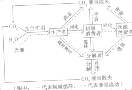 | 聯(lián)系 | 兩者同時進行,相互依存,不可分割。如圖:![]() ①能量流動不能離開物質循環(huán)而單獨進行,能量的固定、儲存、轉移和釋放,離不開物質的合成和分解 ②物質是能量的載體,使能量沿著食物鏈(網(wǎng))流動;能量作為動力,使物質能不斷地在生物群落和無機環(huán)境之間循環(huán)往返。 ③生態(tài)系統(tǒng)中的各組成分——非生物的物質和能量、生產(chǎn)者、消費者和分解者,正是通過能量流動和物質循環(huán)才緊密聯(lián)系在一起,形成一個統(tǒng)一的整體。 | |