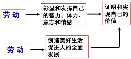 (2)勞動(dòng)是人的存在方式。人只有在勞動(dòng)中才能自由的彰顯和發(fā)揮自己的智力和體力、意志和情感,從而實(shí)現(xiàn)和證明自己的價(jià)值。