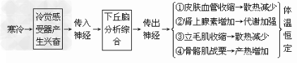 4、寒冷時,激素分泌增多,促進細胞代謝加強,增加產(chǎn)熱量的激素有腎上腺素、甲狀腺激素等。戰(zhàn)栗是骨骼肌的不自主地收縮,不受大腦皮層支配。