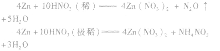 等,這取決于硝酸的濃度和還原劑還原性的強弱。除前面的實例外,鋅與硝酸可發(fā)生如下反應: