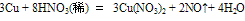 該反應較緩慢,反應后溶液顯藍色,反應產生的無色氣體遇到空氣后變?yōu)榧t棕色(無色的NO被空氣氧化為紅棕色的NO2)。實驗室通常用此反應制取NO氣體。