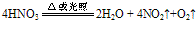 ②不穩(wěn)定性:HNO3見光或受熱發(fā)生分解,HNO3越濃,越易分解.硝酸分解放出的NO2溶于其中而使硝酸呈黃色。有關反應的化學方程式為: