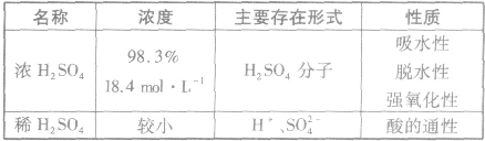 純硫酸是無色、黏稠的油狀液體,密度大,沸點高,是一種難揮發(fā)的強酸,易溶于水,能以任意比與水互溶.濃硫酸溶于水時放出大量的熱。常見濃硫酸的質量分數(shù)為98.3%,其密度為 1.84g·cm-3,沸點為338℃,物質的量濃度為18.4mol·L-1.H2SO4的濃度越大,密度越大,若將30%的H2SO4溶液與10%的H2SO4溶液等體積混合,所得溶液的質量分數(shù)大于20%。