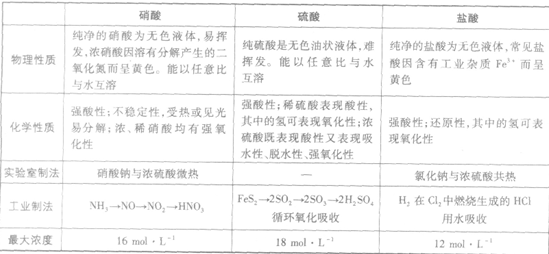 幾種常見酸的比較: