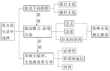 提醒:在文化多元化的今天,文化生活異常豐富,但泥沙俱下,良莠不齊,這就要求我們一定要提高眼力,辨別什么是先進(jìn)、健康的文化,什么是落后、腐朽的文化,只有這樣我們才能有正確的選擇,從而促進(jìn)自身的全面發(fā)展和社會(huì)的進(jìn)步。