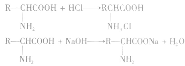 氨基酸分子中一COOH是酸性基團,一NH2是堿性基因。因此,氨基酸是兩性化合物,它既可以與酸反應(yīng),也可以與堿反應(yīng),且都生成鹽。