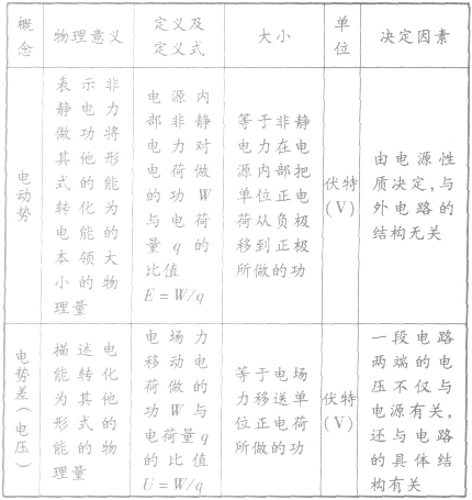 電動(dòng)勢(shì)與電勢(shì)差的比較:
