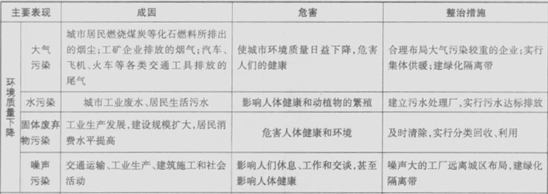 常見城市化環(huán)境問題的表現(xiàn)、成因、危害及整治措施: