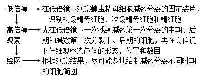 蝗蟲的精母細(xì)胞進(jìn)行減數(shù)分裂形成精細(xì)胞,再形成精子。此過程要經(jīng)過兩次連續(xù)的細(xì)胞分裂:減數(shù)第一次分裂和減數(shù)第二次分裂。在此過程中,細(xì)胞中的染色體形態(tài)、位置和數(shù)目都在不斷地發(fā)生變化,因而可據(jù)此識別減數(shù)分裂的各個時期。