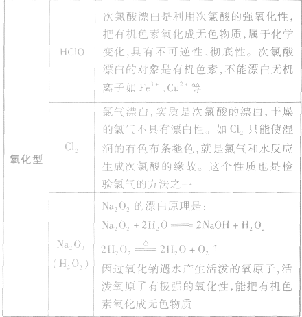 具有漂白作用的物質(zhì)總結(jié):