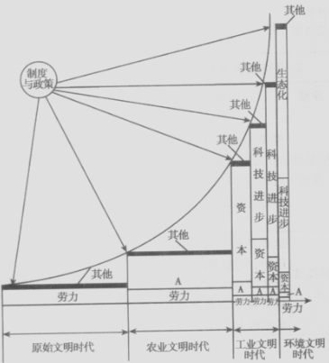中國科學(xué)院可持續(xù)發(fā)展戰(zhàn)略研究組將人類社會(huì)劃分為四個(gè)發(fā)展階段,如圖是“人類社會(huì)不同發(fā)展階段經(jīng)濟(jì)增長主導(dǎo)要素的構(gòu)成示意圖”: