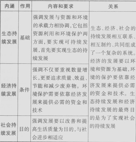 1、包括生態(tài)持續(xù)發(fā)展、經(jīng)濟(jì)持續(xù)發(fā)展和社會(huì)持續(xù)發(fā)展三個(gè)方面,具體內(nèi)容如下面的圖表所示:
