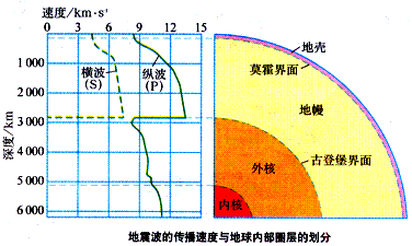 地震波內(nèi)部與地球內(nèi)部構(gòu)造圖: