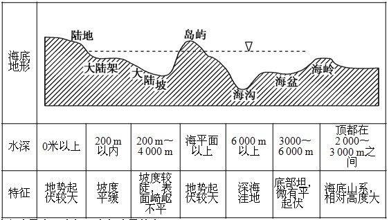 世界海底地形類(lèi)型示意圖及特征: