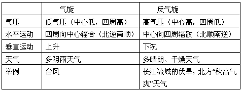 氣旋與反氣旋對(duì)比: