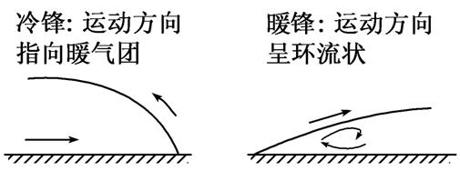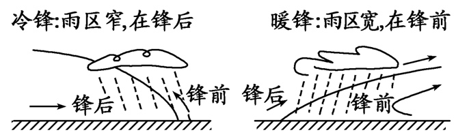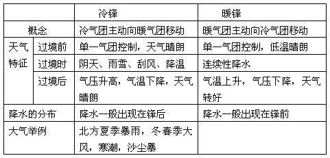 (2)鋒面兩側(cè)溫度、濕度、氣壓差異很大;